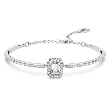 Complete your look with this effortlessly stylish bracelet from Swarovski. Part of the striking Millenia collection, this polished bangle is crafted in a rhodium plating. A centrepiece with an octagon cut Swarovski crystal is surrounded in a border of dazzling smaller crystals. The front of the bangle is also adorned in smaller crystals for a showstopping finish. This elegant bracelet is the perfect way to add luxury to your evening look. Rhodium plated Swarovski crystals Timeless sparkle Adjustable length