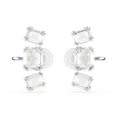 Swarovski Millenia clip earrings, Octagon cut, White, Rhodium plated