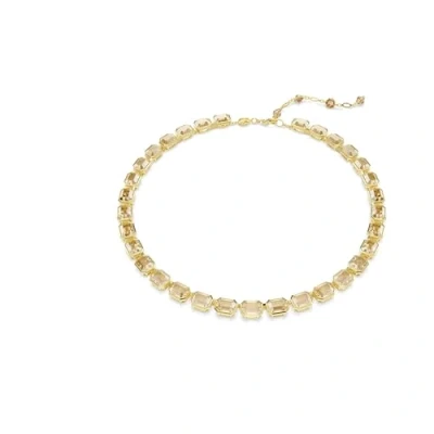 Length: 39 - 44.7 cm; Width: 0.8 cm; Clasp Type: Lobster Bold Opulence: Adorn your neck with the luminous sparkle of a fully articulated row of yellow octagonal crystals in bezel settings, creating a mesmerising display of colour and light Timeless Elegance: Add a luxurious touch of refinement and class to your wardrobe with this striking gold-tone finished necklace, featuring an extender at the back, as well as four additional yellow crystals in the elongation Sleek Sophistication: Embellished with meticulously-cut Swarovski crystals, this all-around necklace from the Millenia collection celebrates the essence of individuality with every shimmering facet Designed to Last: Swarovski jewellery maintains its brilliance when simple care practices are observed; remove before contact with water, lotions or perfumes and polish with a lint-free cloth Items Delivered: 1 x Swarovski Millenia necklace with yellow octagon-cut crystals in a gold-tone finished setting; 1 x Swarovski necklace box