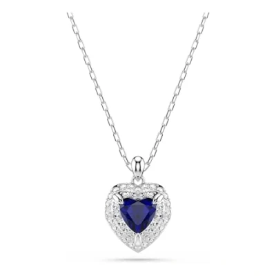 Swarovski One Pendant, Heart Cut, Pavé, Heart, Blue, Rhodium Plated