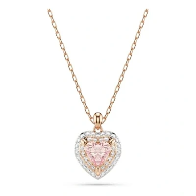 Swarovski One Pendant, Heart Cut, Pavé, Heart, Pink, Mixed Metal Finish