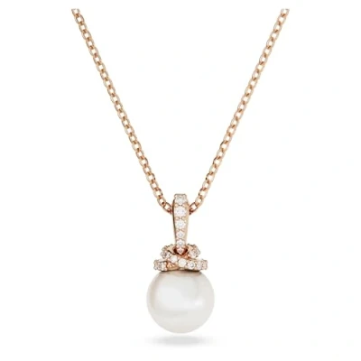 Sometimes simple luxury can be the most striking This Originally pendant is a perfect example, featuring a rose gold-tone plated chain connected to a single Swarovski Crystal Pearl A shimmering pave of Swarovski Zirconia adorns the top of the pearl for extra radiance Wear this piece to illuminate any look