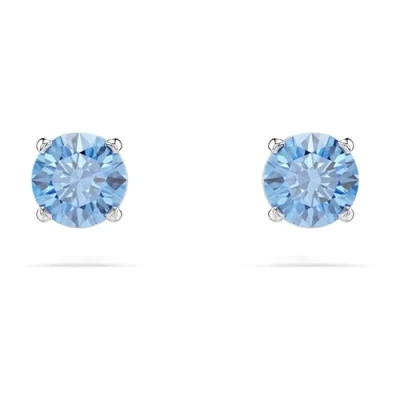 Measurements: 0.4 x 0.4 cm; Weight: 1 g (per individual piece) Shimmering Splendour: Dial up the glamour with these exquisite stud earrings, featuring captivating blue round-cut crystals in prong settings that radiate timeless elegance Radiant Design: Experience elevated luxury with a scintillating rhodium-finished setting, transforming these studs into a truly unique fashion accessory that will turn heads Showstopping Style: These spectacular pierced earrings were made for the spotlight – wear them solo or pair them with other pieces of jewellery from the Swarovski Stilla collection for added romance Designed to Last: Swarovski jewellery maintains its brilliance when simple care practices are observed; remove before contact with water, lotions or perfumes and polish with a lint-free cloth Items Delivered: 1 x Set of Swarovski Stilla Attract stud earrings with blue round-cut crystals in a rhodium-finished setting; 1 x Swarovski earring box