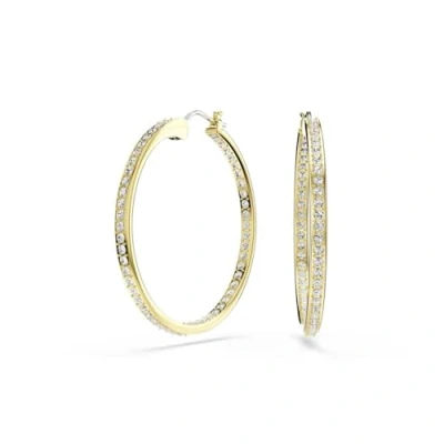 Measurements: 3.5 x 0.3 x 3.5 cm; Weight: 2.55 g (per individual piece) Delicate Brilliance: Adorned with shimmering clear pavé crystals on the outer edge, these exquisite hoop earrings capture the light from every angle to create a soft, enchanting twinkle that elevates any look Subtle Sparkle: These lustrous gold-tone finished pierced earrings glow with radiant sophistication, highlighting graceful curves and refined craftsmanship for a captivating effect Everyday Essential: Part of the Sommerset collection, these versatile crystal-embellished hoops are a must-have accessory, effortlessly blending classic elegance with contemporary style Designed to Last: Swarovski jewellery maintains its brilliance when simple care practices are observed; remove before contact with water, lotions or perfumes and polish with a lint-free cloth Items Delivered: 1 x Set of Swarovski Sommerset hoop earrings with clear pavé crystals in a gold-tone finished setting; 1 x Swarovski earring box