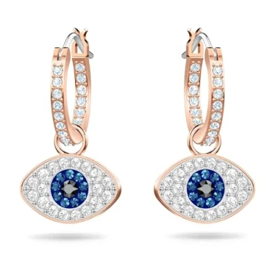 Brilliant and dazzling: Swarovski Symbolic Collection, sparkling hoop earrings combine blue and white crystals with a stunning hanging evil eye, creating a stylish pair of earrings to match any outfit Crafted with excellence: These verstatile 2.5 cm hoop earrings are fashionable yet elegant, can be worn either as stand alone hoops without the evil eye charm or with it for a more mystical look Designed to last: Swarovski jewellery features the extraordinary brilliance of Swarovski crystals and durable metals - to ensure the life of your jewellery avoid contact with water, lotions or perfume Enhance your look: These hoop-shaped earrings, make a lasting impression whether you are in a business meeting, at a romantic dinner or out with friends, these hoops shine regardless Items delivered: 1 x set of Swarovski Symbolic Evil Eye pierced hoop earrings, sparkling white and blue crystals with rose-gold tone plated metal, Swarovski earring box, Swarovski Symbolic collection