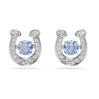 Swarovski Symbolica Stud Earrings, Round Cut, Pavé, Horse Shoe, Blue, Rhodium Plated