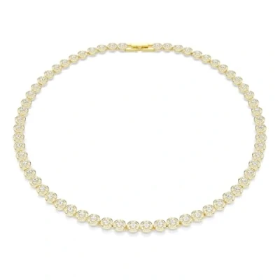 Capturing a look of timeless sophistication, this radiant Una necklace is one of Swarovski’s most cherished silhouettes The gold-tone plated design features a full surround of large round-cut crystals, each framed by a halo of clear pavé