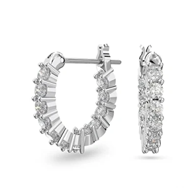 Introducing the stunning Swarovski Vittore Collection, a range that impeccably marries elegance and style, showcasing a pair of exquisite hoop earrings designed to elevate any outfit. These remarkable earrings feature dazzling white crystals that sparkle brilliantly, complemented by the refined beauty of rhodium-plated metal. The result is a fashionable yet timeless accessory that adds a touch of sophistication to your jewellery collection.