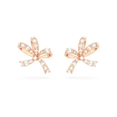 Swarovski Volta stud earrings, Bow, Small, White, Rose gold tone plated