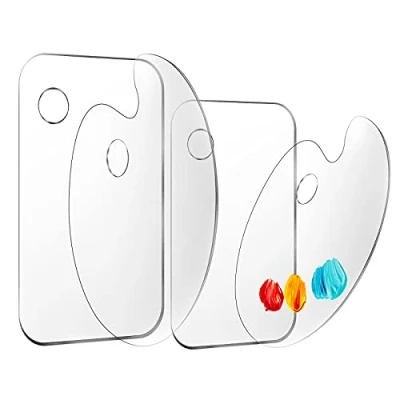【You Will Get】4pcs transparent paint pallets: 1pcs 11.8 x 7.9 inches rectangular acrylic paint pallet, 1pcs 11.8 x 7.9 inches oval plastic paint palette, 1pcs 9.8 x 5.9 inches rectangular paint pallete and 1pcs 9.8 x 5.9 inches oval glass paint palette. 【Highly Transparent】Please remove the protective film on both sides of the paint mixing palette, you will get a highly transparent crystal clear paint palette, no matter from which angle, the color is clear to stimulate the inspiration of the painting. 【Non-stick and Easy to Clean】 The paint palette for acrylic painting mimics the glass surface for easier cleaning, most of the paint can be easily washed with water. 【Easy to Carry】 Different sizes and shapes are suitable for everyone. It’s very portable. The size is perfect, you can simply toss the paint trays for acrylic paint into your backpack, purse, or tote bag when you want to go painting in nature. 【Widely Used】The glass palette usually is used for propylene, gouache, and other pigments color mixing. Ideal for teachers, students, amateur and professional painters. Suitable for costume parties, classes, home decoration, handicrafts, and other artistic creations.