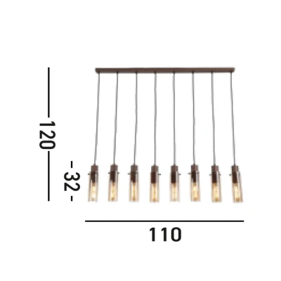 Sweden II 8 Light Bar Celling Pendant Mocha Metal & Amber Glass