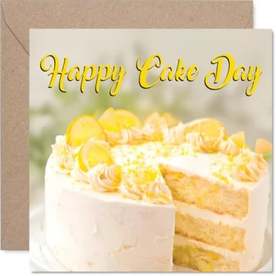 Spreads joy with a sunny, hand-drawn lemon cake and playful 'Happy Cake Day' greeting, capturing a feel-good birthday moment. Birthday card with a light-hearted design style Features a beautifully decorated cake topped with lemon slices, set on a fresh yellow and white background for a burst of celebration. Recyclable and printed in UK for a considerate choice Gloss single sided board with an uncoated inside - no smudging when writing inside. Recyclable and responsibly sourced FSC board. Printed on 360 micron stock for a confident, premium feel Blank inside, giving you plenty of space for your own personal wishes. Envelope included for easy gifting. The 145mm Square format is convenient to display or post Designed and printed in the UK for quality you can rely on, making it a delightful pick for any celebration. Ideal for a mum or dad celebrating a milestone birthday