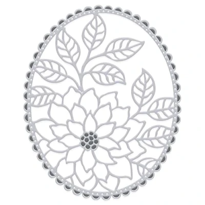 Large oval flower/floral background die. Amazing, detailed, delicate designs. Cut, Emboss, Stencil, can be used in most leading die cutting systems. Designed by Sue Dix. SDD589 MPN SDD589