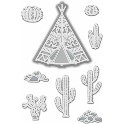 Sweet Dixie Metal Cutting Dies Tepee with Cacti and Rocks