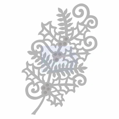 Festive Sprig. Amazing, detailed, delicate designs. Cut, Emboss, Stencil, can be used in most leading die cutting systems. Designed by Sue Dix for Personal Impressions.. Approximate Die Size: 73 x 128mm. SDD234