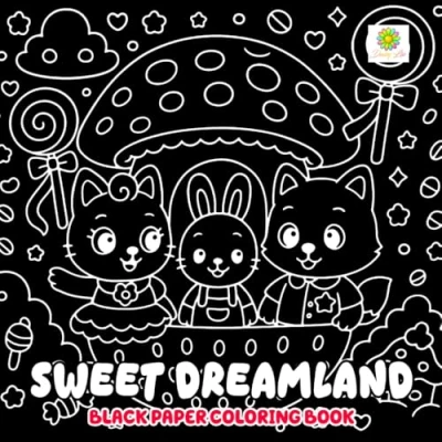 Sweet Dreamland Black Paper Coloring Book: Whimsical Fantasy Scenes and Magical Cozy Worlds on Dark Backgrounds