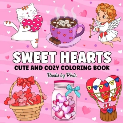 Sweet Hearts Coloring Book: Cute and Cozy Love Themed Illustrations for Adults Kids with Bold Easy Designs Fun Relaxation (Easy Book)