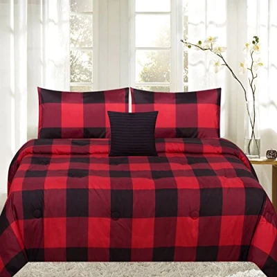 Sweet Home Collection 4 Piece Print Reversible Comforter Set, Full/Queen, Buffalo