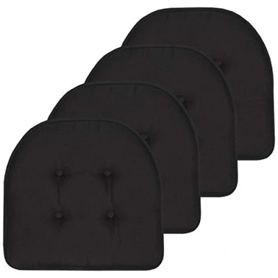 Sweet Home Collection Chair Cushion Memory Foam Pads Tufted Slip Non Skid Rubber Back U Shaped 17" x 16" Seat Cover, 4 Count (Pack of 1), Black