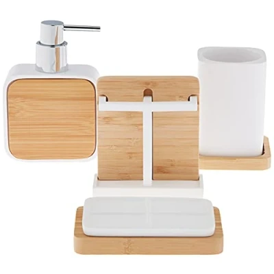 UNIQUE COLLECTIONS - We designed 21 unique styles that are designed to transform your bathroom décor. Our 21 styles are Avalon, Beach Shells, Glamour, Parker, Plaza, Ritz, Urbana, Beach Life, Branches, Marbelized, Moderno, Pendant, Twist, Casanova, Monaco, Marble Plaza, Ocean Star, Omega, Seascape, Urbana Green, Versailles, Coastal, Seaside, and Serendipity. INDIVIDUALLY OR A SET - We offer each item of the collection individually, or buy the 4 piece matching set and save. The 4 piece set includes all pieces which are Lotion Pump (Soap Dispenser), Soap Dish, Toothbrush Holder, and the Tumbler. DURABILITY AND STYLE - These bath accessories are made out of durable material to keep your bathroom looking great for years to come. For the Avalon style, they are made out of concrete! They look awesome and feel durable. With the other set, we use a poly resin that is strong and lasts. SIZE UP - Each piece are of the following dimensions: Soap/Lotion Dispenser: 2. 5" x 2. 5" x 7. 75", Soapdish: 5. 12" x 3. 75" x 1", Toothbrush holder: 2. 5" x 4. 25" x 4", Tumbler: 2. 75" x 2. 75" x 4" EASY TO CARE - These bath accessories are simple to clean. Simply grab a damp cloth or cleaning wipe, and wipe clean.