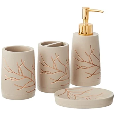 Sweet Home Collection Contemporary Decorative Beautiful Designs Bath Shower Tub Décor, Resin, Branches, 4 Piece Set