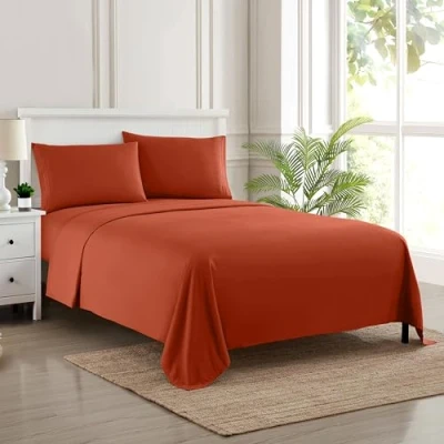 Sweet Home Collection Luxury Bedding Set with Flat, Fitted Sheet, 2 Pillow Cases, Microfiber, Rust, California King