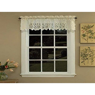 Sweet Home Collection Old World Style Floral Heavy Lace Kitchen Curtain Valance, Hopewell Cream