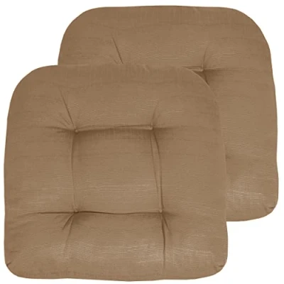 Sweet Home Collection Patio Cushions Outdoor Chair Pads Premium Comfortable Thick Fiber Fill Tufted 19" x Seat Cover, 2 Count (Pack of 1), Taupe