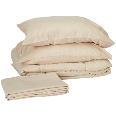 OUTSTANDING 5 PIECE SET - Ready to update your bedroom decor? Get everything you need in one set! This soft and comfortable down alternative comforter set includes all you need to transform your bed into a home décor dream. In each pre-packaged set you will receive 1 all season brushed microfiber comforter, 1 fitted sheet, 1 flat sheet, and 2 pillowcases. Update your bedding with our Sweet Home Collection 5 Piece Bed in a Bag Comforter Set today! PERFECT FOR ALL SEASONS - We want you to be comfortable all year 'round. Having to pull out the old and heavy down comforter for winter is a hassle. We bring you a comforter that was designed for use throughout the year. Stay warm in the winter and cool in the summer. Our breathable, double brushed microfiber was designed with you in mind. Be comfortable and bring some flair today with this beautiful 5 piece set. LIE IN LUXURY – No more sleepless nights on uncomfortably itchy sheets! Sleep soundly on the softest microfiber sheets and down alternative comforter. They become softer with each wash and stay cool through the night. Be warned, though: You may never be an early bird again! HOW WE SIZE UP - Our comforter comes in five sizes, Twin, Twin XL, Full, Queen, and King size. Queen dimensions are as follows: Comforter: 88" x 88", Fitted Sheet: 60" x 80" , Flat Sheet: 92" x 102", 4 Pillowcases: 20" x 30" Each STAY CLEANER, LONGER – Who has time to wash their comforter and sheets every few nights? When it’s time for a wash, machine wash cold, and tumble dry low.