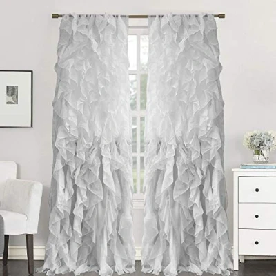 Sweet Home Collection Vertical Ruffled Waterfall Curtains, voile, Silver, 108 in x 50