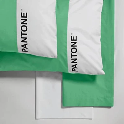 Single bed set: one sheet 150 x 280 cm, one pillowcase 50 x 80 cm, two-tone with Pantone logo, a fitted sheet 90 x 200 cm, adaptable to mattresses up to 25 cm height Fabric: 100% cotton percale 200 thread count with a particularly dense structure and therefore soft and lightweight. A very soft and high-quality fabric with brilliant colours Colour: Plain bed sheet, white fitted sheet, two-tone pillowcase. The reactive dye used allows the colour to remain intact over time. Washable at 40 °C and easy to iron CERTIFIED: OEKO-TEX certified, manufactured with materials free from toxic and harmful substances to health, respecting the environment. Suitable for both winter and summer Mix & Match: The assortment of this collection also includes the duvet cover set, with which you can create imaginative mix & match. Available in 10 shades for all ages and styles