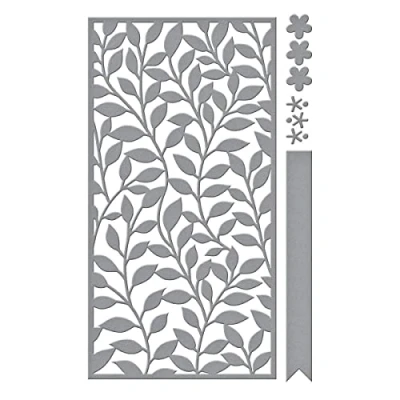 Mini Slimline Outline: 3.30 x 6.30" 8.3 x 15.9 cm; Sweet Leaf Insert: 3.10 x 15.4 cm; Flower Base (x 3): 0.50 x 0.50" 1.1 x 1.1 cm; Flower Layer (x 3): 0.30 x 0.30" 0.7 x 0.7 cm; Flower Center (x 3): 0.10 x 0.10" 0.7 x 0.7 cm; Tag: 0.50 x 4.00" 1.1 x 10.2 cm 95% Spring Steel, 5% Lead Free Paint