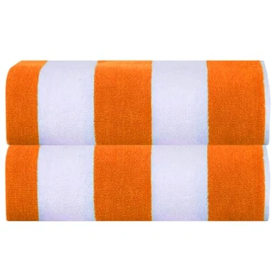 Sweet Needle Beach Towels for Adults Pack of 2 Orange Cabana Striped Classic 100% Cotton Terry Ringspun Pool towel, Quick Dry, Super Absorbent Swimming large 450 GSM, 76 x 152 cm