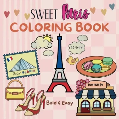 Sweet Paris Coloring Book: Cute Parisian Designs for Adults and Teens Landmarks, Cafés, Fashion, Pastries, More (Bold & Easy Coloring)