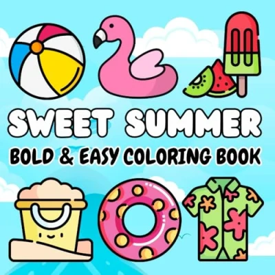 Sweet Summer Bold & Easy Coloring Book: 45 Fun and Simple Themed Pages for Relaxation Stress Relief Adults, Teens Kids !