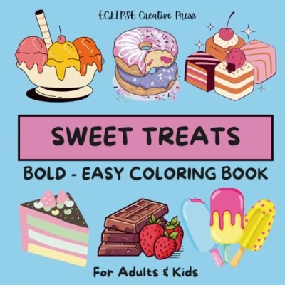 SWEET TREATS: BOLD & EASY Coloring Book for ADULTS KIDS, 52 Designs, Perfect Relaxation Stress Relief (BOLD Books)