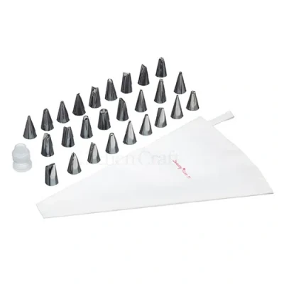 General description Create a variety of different icing effects on cakes and treats, adding the perfect finishing touch to your delicious kitchen creation. This complete icing set includes everything you need to enhance your baking projects. Technical specifications 28 pieces total 26 assorted stainless steel nozzles Reusable piping bag Coupler for quick and easy nozzle changing