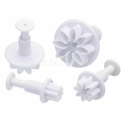 EASY SUGARCRAFT: make pretty 3D fondant flowers and gorgeous gumpaste succulents in seconds, with these easy to use icing cutters TAKE THE PLUNGE: simply press down on the spring loaded fondant moulds to cut, emboss and release the icing in 1 quick action FLOWER DESIGN: you'll love the intricate floral shape that embosses onto the icing, giving a realistic look to your cake decorating VERSATILE: these sugarcraft tools are great for fondant, gum paste and marzipan, as well as non-edible clays Includes 4 fondant plunger cutters in assorted sizes. Made of robust plastic. Includes a 12 month guarantee