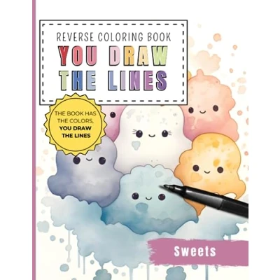 sweets Kawaii Reverse Coloring Book You draw the line: 35 Watercolor Color Pages of cute For To Add Your Own Drawings, Doodles and Line Art (Reverse Books)
