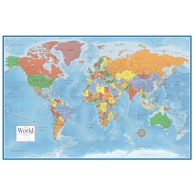 LARGE WORLD MAP - Large A1 92cm x 61cm world map poster Laminated World Map - long lasting and durable - each map is laminated on both sides with a natural matte-finish laminate Rolled World Map - each world map is rolled up and ready to hang - not folded and no creases Hot New 3D Visual Relief - our new world map included both ocean and land terrain shading so which brings a striking visual presentation unlike other world maps on the market Current World Wall Map - current and up-to-date our world maps have all political boundaries for 2021