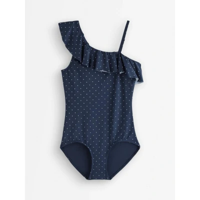 Lindex ONE Shoulder DOT Swimsuit navy Sale at Zalando UK | Outer fabric material: 27% elastane, 73% polyamide | Sale order at Zalando UK! Size: 7-8y. Color: Navy. Pattern: polka dot. Age group: Kids.