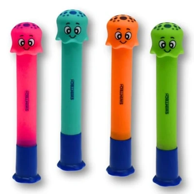 PACK OF 4 SWIMTECH DIVE STICKS: Made from soft, flexible silicone for safety and worry-free pool learning play. Brightly coloured for easy visibility underwater, perfect for boosting kids' confidence while having fun in the water. ENCOURAGES SKILLS DEVELOPMENT: With exciting games like 'grab and go' and 'traffic light' share the fun of swimming and diving with your children. Designed to inspire playful competition and improve your child’s water confidence while ensuring complete safety in the pool. PORTABLE AND CONVENIENT: The set comes in a mesh carry bag, making it easy to take on holiday or store after swimming lessons. These lightweight dive sticks are ideal for travel, ensuring endless fun wherever you go. SAFE FOR CHILDREN: Made of non-toxic materials free from harmful chemicals or sharp edges. CE UKCA certified, the Swimtech dive sticks are designed for complete peace of mind during playtime at the pool. PERFECT FOR AGES 3 PLUS: Our durable and flexible dive sticks ( are the ideal pool accessory for beginners and confident swimmers alike. Fun design makes pool time exciting while helping children develop essential swimming skills., Manufacturer: Swimtech