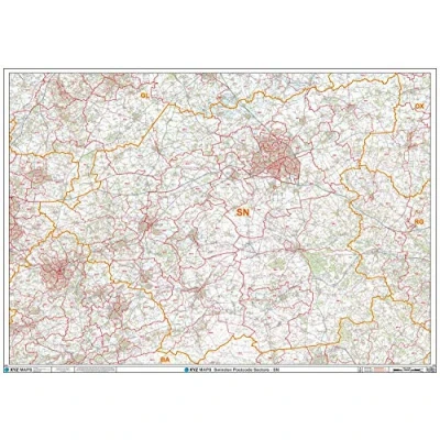 A High Quality Postcode Sector Wall Map. Showing the Entire SN Postcode Area, with Precise Boundaries and Clear Postcode Labels on a Detailed Map Background. A0 Size - 1189mm x 841mm Plastic Coated waterproof / wipeable