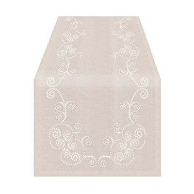 Swirl Embroidered Table Runner 16"x54" Oblong, Natural
