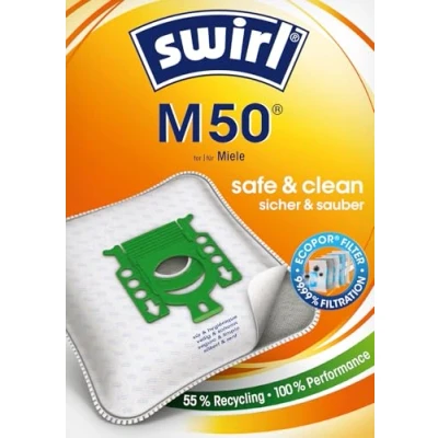 High suction force throughout bag: Pre-filtering of dust and dirt via an extra filter chamber, Ensures long-lasting high suction performance due to optimal distribution - For Miele Hypoallergenic: Thanks to the anti-allergen filter layer on the outer wall especially beneficial to people with allergies, Smallest allergens such as fine dust, pollen, mould spores, dust mites and bacteria are retained in the bag Perfect adaptation to any vacuum cleaner: The rounded corners ensure perfect fit in all vacuum cleaners and ensures optimal utilization of the storage space in the vacuum cleaner Convenient, clean disposal: The lockable retaining plate prevents the escape of dust particles and dirt when changing and disposing of the full bag Contents: 1 pack, 4 bags 1 filter, Swirl M50 vacuum cleaner bags with AirSpace Technology - Long Power, Suitable for Vacuum cleaners: Miele, Weight: 0.0220462262 pounds, Manufacturer: Swirl