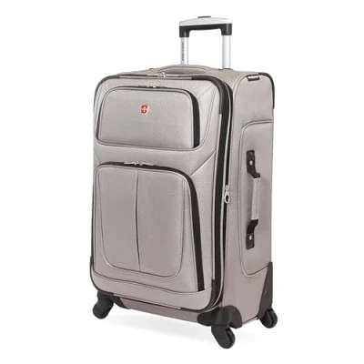 SwissGear Sion Softside Expandable Luggage, Pewter, Checked Medium 25 Inch, Luggage