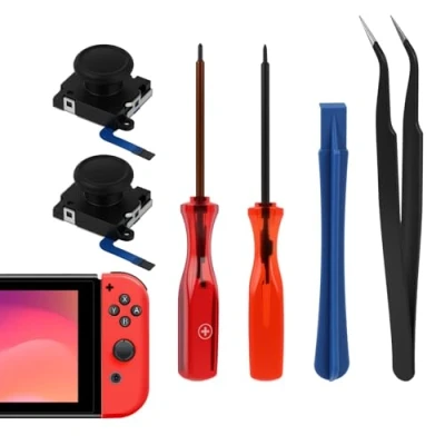 High-Quality Joystick Replacements: This kit includes two premium 3D analog joysticks designed to replace faulty or worn-out joysticks on Nintendo Switch, Switch OLED, Joy-Con, and Switch Lite controllers. Restore precise control and eliminate drift issues effectively. Complete Repair Tools Included: Equipped with essential tools for a successful repair, this kit features a "Y" tri-wing screwdriver, a "+" cross screwdriver, a pry tool, and tweezers, ensuring you have everything needed to tackle joystick replacement with confidence. Enhance Gaming Experience: By replacing your controller's joysticks with our high-quality parts, you can enjoy a rejuvenated gaming experience with renewed accuracy and responsiveness. Perfect for gamers looking to restore their controller's functionality without purchasing a new one. DIY Friendly with a Note on Installation: While this kit is designed for DIY repairs, it does not include a manual or instruction guide. We recommend users with basic technical skills for installation, or consider professional help to ensure a flawless repair. Compatibility and Usage Note: Specifically tailored for Nintendo Switch series controllers including the original Switch, OLED, Joy-Con, and Lite versions. Please note, this kit is not compatible with Nintendo Switch 2. Recalibration might be necessary post-installation for optimal performance., Platforms: Nintendo Switch