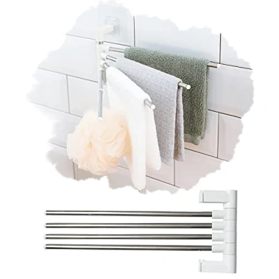 Swivel Towel Bar Wall Mounted 4 Arm Rack Stainless Steel Holder Space Saving Rail for Kitchen Bathroom