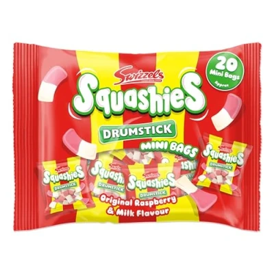 Classic Drumstick Flavour: Relive the nostalgia with Swizzels Drumstick Squashies, offering the iconic raspberry and milk taste in a soft, chewy format, free from artificial colours Perfect for Parties: Ideal for party bags, each mini bag of gummy sweets ensures a delightful addition to any celebration, making them perfect for distributing in party bags Individually Wrapped Mini Sweets: Conveniently wrapped, these orginal squashie sweets are great for sharing, perfect as party bag fillers or added to a movie night hamper Sweet Bulk Buy Convenience: Stock up with this multipack for kids' parties, ensuring ample treats for all. Ideal as Halloween sweets, Easter sweets, or party bag filler's Versatile Uses: Suitable for various occasions and celebrations, these sweets are perfect for filling up sweet jar's at parties, as goodies in sweet hamper's, or in gift boxes