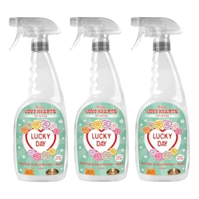 Swizzels Love Hearts Pet Stain & Odour Remover, 3 x 750 ml, Apple Scent, Neutralises Odours, For Hard Soft Surfaces, Spray